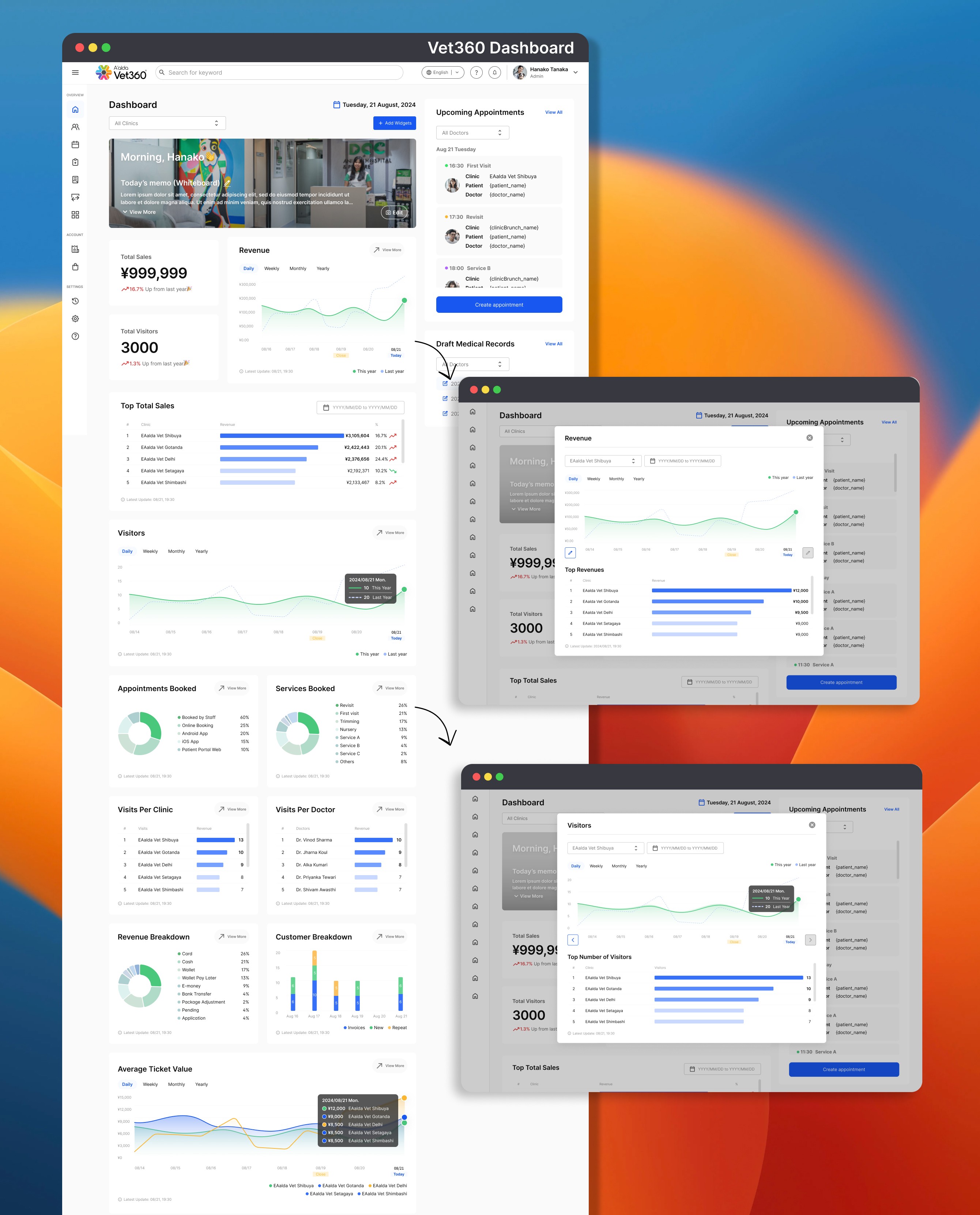 After launching the redesigned Vet360 dashboard, clinics reported a noticeable improvement in daily operations. There was a 30% increase in user engagement, with staff and doctors spending more time using the platform to manage appointments, sales, and medical records. The customizable widgets and visually clear reports made it easier for clinics to track performance, leading to better decision-making and time savings. As a result, customer satisfaction improved, and more clinics adopted Vet360 as their daily go-to management tool.